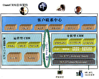 經(jīng)營(yíng)分析型CRM: OmniVision是OmniCRM方案中經(jīng)營(yíng)分析型CRM的核心,它采用數(shù)據(jù)倉庫、ETL、OLAP分析、靈活報(bào)表展現(xiàn)及數(shù)據(jù)挖掘等技術(shù),結(jié)合電信業(yè)務(wù)的深厚經(jīng)驗(yàn),進(jìn)行用戶分析、業(yè)務(wù)分析、收益分析、大客戶分析、營(yíng)銷分析、競(jìng)爭(zhēng)分析、服務(wù)質(zhì)量分析等主題分析。 客戶聯(lián)系中心: OmniContactCenter是OmniCRM方案中的客戶聯(lián)系中心,包括多媒體呼叫中心、網(wǎng)上用戶自服務(wù)系統(tǒng)(網(wǎng)上營(yíng)業(yè)廳)、直郵傳真處理中心等。所有的市場(chǎng)活動(dòng)都是由客戶聯(lián)系中心傳遞給客戶的,所有的客戶反饋和請(qǐng)求都是由這里反饋給分析系統(tǒng)的。 大客戶管理:OmniVIP OmniVIP是亞信公司結(jié)合深厚的行業(yè)知識(shí),專門針對(duì)集團(tuán)大客戶、商業(yè)大客戶、潛在大客戶等各類電信大客戶,從分析和運(yùn)營(yíng)兩個(gè)方面為各電信公司提供的完整而領(lǐng)先的大客戶管理方案,它能夠?yàn)檫\(yùn)營(yíng)商提供現(xiàn)有及潛在大客戶的全方位視圖,包括客戶行為、業(yè)務(wù)情況、商業(yè)獲利率、競(jìng)爭(zhēng)情況等,挖掘潛在商機(jī),使利潤(rùn)最大化;能夠使運(yùn)營(yíng)商有效地降低成本;能夠使運(yùn)營(yíng)商為大客戶提供真正的個(gè)性化服務(wù);能夠使運(yùn)營(yíng)商預(yù)測(cè)、吸引并發(fā)展?jié)撛诘拇罂蛻;能夠使運(yùn)營(yíng)商有效地管理大客戶服務(wù)人員,提高客戶的滿意度和忠誠度;能夠通過OmniContactCenter、代理商、營(yíng)業(yè)廳、SMS、Email等全面的渠道管理,幫助電信運(yùn)營(yíng)商對(duì)大客戶進(jìn)行“全員、全程、全方位”服務(wù),從而全方位地為大客戶提供最完善優(yōu)質(zhì)的服務(wù)。 市場(chǎng)管理:OmniMarketing OmniMarketing根據(jù)分析系統(tǒng)得出的結(jié)論,產(chǎn)生相應(yīng)的市場(chǎng)活動(dòng)發(fā)送給運(yùn)營(yíng)型CRM部分執(zhí)行,同時(shí)將執(zhí)行結(jié)果和反饋收集回來進(jìn)行比較、評(píng)價(jià)和進(jìn)一步的分析,以期設(shè)計(jì)出更合理的資費(fèi)和更貼切的業(yè)務(wù)給用戶。 銷售管理:OmniSFA 隨著競(jìng)爭(zhēng)的加劇,運(yùn)營(yíng)商的銷售也將從傳統(tǒng)的柜臺(tái)坐等的經(jīng)營(yíng)模式轉(zhuǎn)變成有針對(duì)性的主動(dòng)出擊發(fā)展客戶的模式。銷售管理系統(tǒng)就是提供了針對(duì)銷售人員的銷售輔助工具,其中包括任務(wù)分配與下達(dá)、日程安排、客戶資料管理、銷售機(jī)會(huì)管理、銷售漏斗、報(bào)價(jià)管理、訂單合同管理、銷售業(yè)績(jī)考評(píng)和資金評(píng)定等模塊。 通過OmniSFA,銷售工作將按照科學(xué)化正規(guī)化流程化的方式來進(jìn)行。 運(yùn)作型和分析型CRM的互動(dòng)循環(huán)