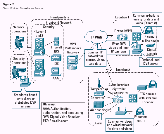 盡管圖中描述了眾多不同的網(wǎng)絡模塊,此架構可相當簡單地加以總結。除安全運營中心外,所有視頻獲取和監(jiān)控設備都位于網(wǎng)絡邊緣。在總部和遠程地點設計中,它們都與接入層交換機連接。安全運營中心可被認作為一個新模塊,但也有人認為它只是另一初始管理模塊。其差別只是管理采取了物理安全的形式。