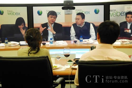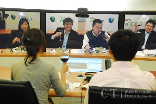 CTI論壇(ctiforum)5月6日消息(記者 楊佳林):中國,北京,2010年4月28日:無需像德國國防部長古滕貝格那樣駕車行駛3000多公里長途奔襲,跨越太平洋也一樣享受零距離的午餐。思科中國首席技術(shù)官梁永健、思科中國區(qū)副總裁華東區(qū)總經(jīng)理陳葵、思科WebEx研發(fā)及協(xié)作軟件全球副總裁袁征今天通過思科的網(wǎng)絡(luò)會(huì)議技術(shù)和中國知名博主在北京、上海和舊金山三地共進(jìn)午餐。