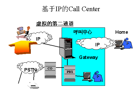 服務(wù)供應(yīng)商建立VoIP網(wǎng)關(guān),從PSTN通過T1、E1或ISDN主速率接口(PRI)線路接受呼叫,并且通過TCP/IP連接將其路由設(shè)在另一個位置。網(wǎng)關(guān)可連接至計算機電話(CT)服務(wù)器上,該服務(wù)器可播放提示,錄制信息,傳輸呼叫,提供按鍵式菜單選擇,文語轉(zhuǎn)換(TTS),創(chuàng)建會議呼叫,收發(fā)傳真,發(fā)送數(shù)字和字母數(shù)字尋呼。在這里,電話中繼線直接來自PSTN還是PBX并無太大差別。另外,擁有多個駐留點的服務(wù)供應(yīng)商充分利用所屬的廣域網(wǎng)將語音阻塞轉(zhuǎn)至呼叫中心,從而避免長話費用。