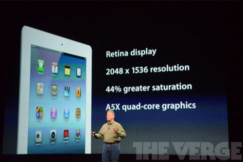 新一代iPad從外觀上與二代iPad并無太大區(qū)別,仍然保留Home鍵,其中屏幕采用分辨率為2048*1536像素的視網(wǎng)膜屏,其是iPad二代1024*768像素的分辨率四倍,支持1080p影片。