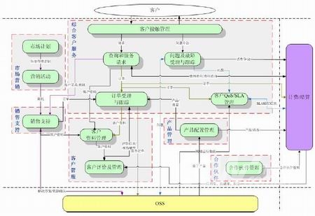 目前,傳統(tǒng)運(yùn)營商的工作流程是基于97工程基礎(chǔ)之上的,各項(xiàng)工作都是以面向生產(chǎn)的方式來組織實(shí)施的,其作用在于把電信業(yè)務(wù)流程(受理、計(jì)費(fèi)、故障/投訴處理和客戶信息管理和查詢等)實(shí)現(xiàn)計(jì)算機(jī)化。由于該系統(tǒng)是面向生產(chǎn)的、面向企業(yè)內(nèi)部的,并且該系統(tǒng)是在賣方市場情況下實(shí)施的,因此,在新形勢下該系統(tǒng)已不適應(yīng)以客戶為中心的經(jīng)營模式和新的市場環(huán)境。