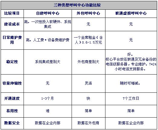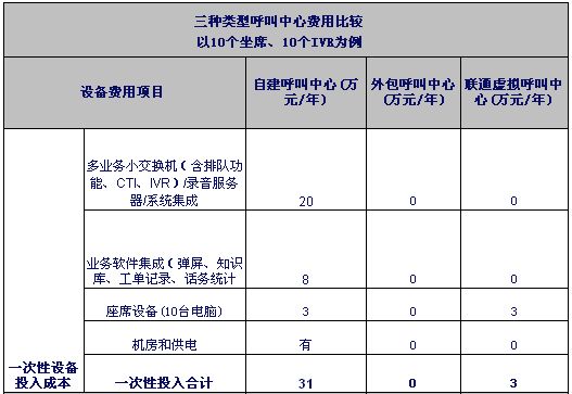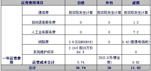 注1:自建和外包呼叫中心按目前市場平均價計算。虛擬呼叫中心按聯(lián)通標準資費計算。外包坐席按裸坐席計算。