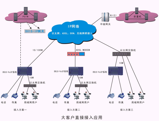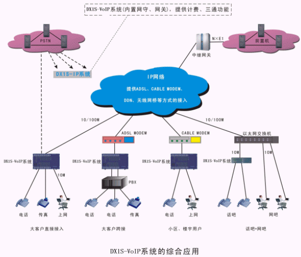 ·DX1S-VoIP系統(tǒng)可提供以太網(wǎng)、DDN、ADSL、無線網(wǎng)橋等多種接入方式,辦事處或分支機構根據(jù)現(xiàn)有的條件可靈活選擇接入方式。