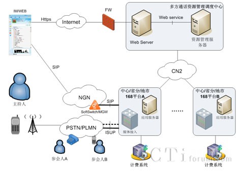 所謂“交互式電話會議”是指由分布在不同地方的與會者,通過固定電話或移動電話或數字電話終端等通信終端,采用約定的方式(呼入方式或呼出方式)進入電話會議狀態(tài),主持人和與會者彼此能自由交談,自由發(fā)言的業(yè)務。新太交互式電話會議服務系統(tǒng)對“交互”二字的體現主要表現在語音的交互及控制的交互兩方面。語音的交互是指會議主持人以及與會者不僅可以聽到會議現場別人的發(fā)言,還可以自由地發(fā)表自己的見解;控制的交互性是指會議主持人具有對整個會議的控制權,有權加入新與會者或強行拆除某與會者,有權決定是否對會場錄音等。此外,在交互式電話會議的定義上本系統(tǒng)還延伸出多種會議模式,如允許申請發(fā)言的廣播式會議、點名發(fā)言的廣播式電話會議、分組討論會議等。