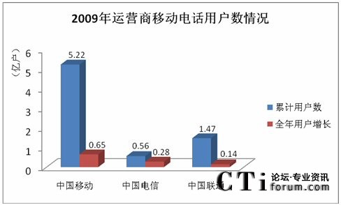 截至2009年12月31日,國(guó)內(nèi)移動(dòng)電話用戶累計(jì)達(dá)到74738.4萬戶,中國(guó)移動(dòng)的用戶總數(shù)已達(dá)到5.22億戶,累計(jì)客戶凈增長(zhǎng)6503.3萬戶,在三大運(yùn)營(yíng)商中,中國(guó)移動(dòng)的用戶保有量和每月新增用戶數(shù)份額仍然最大。