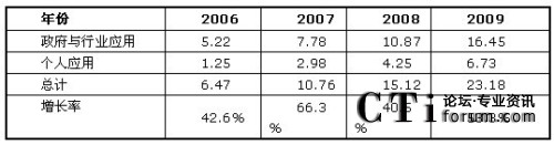 表1、2006-2009中國(guó)移動(dòng)位置服務(wù)市場(chǎng)規(guī)模(億元)