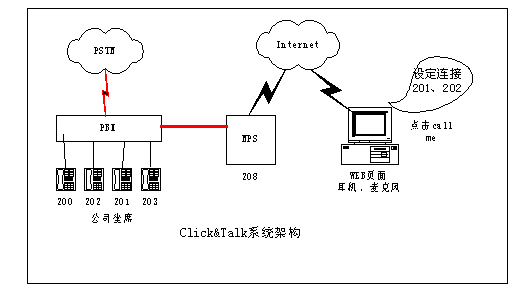 舉個例子,在傳統(tǒng)的網(wǎng)上交流手段下,對于一個在線商戶來說,其客戶如果需要與而且也容易造成客戶流失,F(xiàn)在采用Click&Talk系統(tǒng)后,一個在線的商戶只要將一個Click & Talk的按鈕嵌在在線商店里。世界各地的用戶只需要通過PC,點擊在線商戶的這個按鈕,就能與商戶電話聯(lián)系,或請求在方便的時間給予回?fù)。通過這種通信模式,世界各地的客戶都能和您保持密切互動的聯(lián)系,而不用擔(dān)心長途電話的費用。還可以實現(xiàn)公司出差人員及分支機(jī)借助Click&Talk平臺和公司總部的通話的應(yīng)用,大幅節(jié)省話費成本。