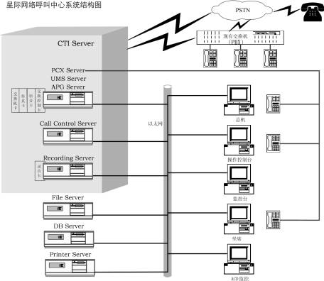 系統(tǒng)主要由座席卡、數(shù)據(jù)庫服務(wù)器等硬件設(shè)備和系統(tǒng)應(yīng)用軟件構(gòu)成。它以電話服務(wù)為主要方式、結(jié)合對計(jì)算機(jī)信息系統(tǒng)的資料數(shù)據(jù)的統(tǒng)計(jì)、分析、運(yùn)用,為客戶提供全方位的服務(wù)。