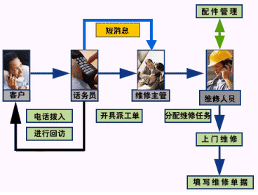 后臺客服應用子系統(tǒng)建成后,客戶的投訴被自動導入,生成投訴單和維修單,自動轉發(fā)給維修部,安裝部等專業(yè)部門進行處理,處理完后,系統(tǒng)會安排話務員進行回訪,消費者的處理意見和滿意度將被忠實地記錄下來,進一步充實到客服數(shù)據(jù)庫中以指導企業(yè)的生產研發(fā)。