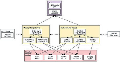 BICC規(guī)范中定義了BICC使用信令傳輸轉(zhuǎn)換器(STC)層來(lái)傳輸信令消息。 Q.2150.0 描述了通用的STC業(yè)務(wù),不同的STC業(yè)務(wù)在Q.2150.X中被定義。由此看出,BICC可以利用現(xiàn)有的STM、ATM和IP來(lái)傳輸。