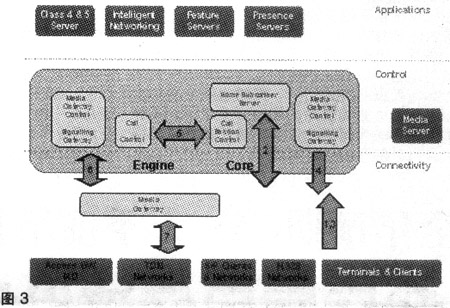 連接層由3個關(guān)鍵部分組成:用戶設(shè)備、媒體網(wǎng)關(guān)和IP傳輸。ENGINE解決方案的媒體網(wǎng)關(guān)可以支持從很小數(shù)量的用戶擴(kuò)展到數(shù)百萬用戶。本地交換機(jī)、匯接交換機(jī)和用戶交換機(jī)可以接入到媒體網(wǎng)關(guān)。多媒體用戶可通過SIP終端和IAD接入。ENGINE支持采用V5、ISUP、SIP和H.248等各種接入節(jié)點的用戶。在ENGINE解決方案中,媒體網(wǎng)關(guān)同時也是接入網(wǎng)關(guān),可以實現(xiàn)C5電話業(yè)務(wù)和基于SIP的寬帶用戶功能。