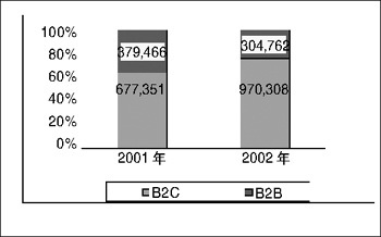 各種類(lèi)型游戲在整個(gè)游戲市場(chǎng)中所占的比例(2001年 / 2002年)