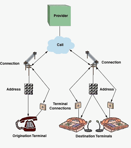 程序員在掌握利用JTAPI編寫CTI程序之前,首先得搞清JTAPI最基本的電話模型,這個(gè)模型是搭建CTI程序的基礎(chǔ),它可以以樹狀結(jié)構(gòu)表現(xiàn)出來(lái)(如下圖)。