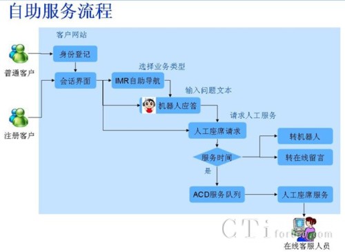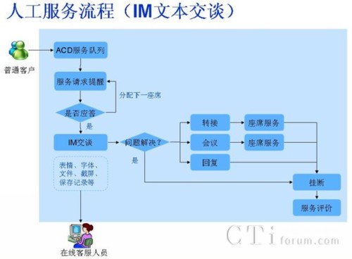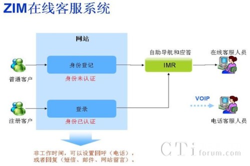 客戶從網(wǎng)站設(shè)定的多個入口訪問企業(yè)在線客服,系統(tǒng)同時進行客戶身份認證,客戶可以選擇訪客或注冊用戶身份訪問在線客服系統(tǒng)(如銀行的網(wǎng)銀客戶不需要客戶輸入身份直接進入系統(tǒng)),客戶以不同的身份訪問在線客服系統(tǒng),關(guān)系到在轉(zhuǎn)人工座席時ACD的路由策略、技能組座席服務(wù)定位、客戶既往服務(wù)信息的完整和個性化服務(wù)的體現(xiàn)。