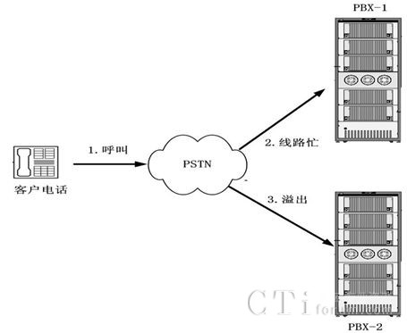多套聯(lián)絡(luò)中心也可以通過(guò)PBX語(yǔ)音對(duì)接得方式實(shí)現(xiàn)呼叫互轉(zhuǎn),其中最典型的應(yīng)用就是溢出呼叫轉(zhuǎn)接,通過(guò)交換機(jī)轉(zhuǎn)接的方式,實(shí)現(xiàn)服務(wù)溢出處理。