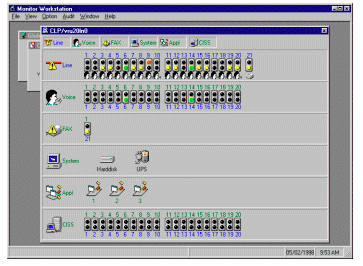 VoiceMaster的Monitor Workstation是一個為提供即時系統(tǒng)功能和動態(tài)信息而設(shè)計的通用工具程序。監(jiān)控工作站(Monitor Workstation)顯示系統(tǒng)組件和系統(tǒng)操作特性、通訊線路、主控計算機(jī)的連接情況、不間斷電源(UPS)及磁盤容量等各自實時狀態(tài)的圖形簡報。當(dāng)有問題或出錯時產(chǎn)生報警及警告信息來通知系統(tǒng)管理員。