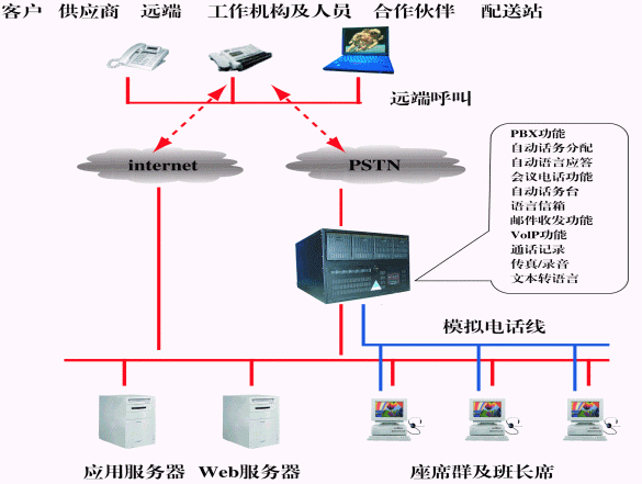 現(xiàn)代物流企業(yè)與以往的物流企業(yè)不同,不僅僅局限于物流中的某一個環(huán)節(jié),而是普遍采用了信息化管理技術(shù),如ERP、物流管理(LM)、SCM等應(yīng)用系統(tǒng),并通過Internet將遍布在各地的物流中心與客戶連接起來,形成一個高效率的物流配送網(wǎng)絡(luò)。建立在奧迪堅基于IP的分布式呼叫中心平臺上的客戶服務(wù)系統(tǒng),以IP技術(shù)為核心在網(wǎng)絡(luò)上構(gòu)建一個語音和數(shù)據(jù)的統(tǒng)一平臺,在一臺服務(wù)器上融合了CTI、PBX、ACD、VoIP、Voice、Mail,Recording,Call Routing等技術(shù)和應(yīng)用,實現(xiàn)網(wǎng)絡(luò)時代高效通訊所需所有常用功能。同時憑借其高度的靈活性和柔韌性,可以無縫地嵌入物流配送網(wǎng)絡(luò)的各個環(huán)節(jié),成為真正滿足現(xiàn)代物流企業(yè)需要的綜合性服務(wù)和營運中心,無論在世界的哪個角落,遠(yuǎn)程IP座席和分布的異地機(jī)構(gòu)都可以共享所有資源(語音、數(shù)據(jù)、座席),真正實現(xiàn)一個高效的、信息共享的分布式呼叫中心系統(tǒng)。