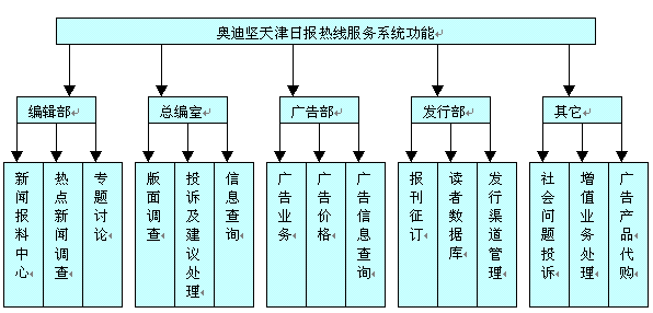 《天津日報》是天津地區(qū)最重要、最權威的新聞媒體,在經(jīng)歷了半個多世紀的輝煌歷程后,現(xiàn)已成長壯大成為擁有十報兩刊一網(wǎng)站的報業(yè)集團,其自身在多年的發(fā)展下逐漸由單一的一份機關報逐漸成為一份具有都市特征的綜合類大報,發(fā)行量不斷攀升,讀者群體不斷擴大,面對的競爭也更為激烈。為了更好整合報社資源,規(guī)范報社對外窗口形象,提升核心競爭力,《天津日報》經(jīng)過廣泛的市場調(diào)研,最終選用奧迪堅基于IP的分布式呼叫中心系統(tǒng)組建天津日報服務熱線系統(tǒng),該系統(tǒng)是建立在奧迪堅IP一體化呼叫中心平臺之上,采用統(tǒng)一接入號碼,借助華泰貝通憑借多年的呼叫中心建設經(jīng)驗,為讀者搭建起來一座溝通的橋梁。