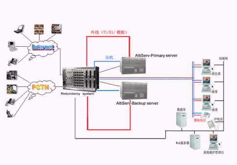 奧迪堅(jiān)全球領(lǐng)先的CTI平臺的供應(yīng)商和IP分布式呼叫中心的領(lǐng)導(dǎo)者,在技術(shù)上不斷創(chuàng)新,對產(chǎn)品精益求精,尤其體現(xiàn)在對系統(tǒng)的運(yùn)行安全性的要求上,為了防止電信接入設(shè)備或者企業(yè)網(wǎng)絡(luò)出現(xiàn)故障而造成的呼叫中心服務(wù)中斷,奧迪堅(jiān)呼叫中心系統(tǒng)提供安全保護(hù)冗余切換系統(tǒng),來保障呼叫中心在意外情況下的正常工作,該安全冗余切換系統(tǒng)通過對電源、T1/E1、模擬trunk、分機(jī)座席、以及各種網(wǎng)絡(luò)鏈路串口等備份切換來實(shí)現(xiàn)可靠的運(yùn)行。除此之外,奧迪堅(jiān)系統(tǒng)本身也提供強(qiáng)大的安全保障,由于采用先進(jìn)IP內(nèi)核一體化設(shè)計(jì),集傳統(tǒng)PBX、CTI服務(wù)器、IVR、ACD、Recording、FAX等眾多設(shè)備于一體,這樣有效的避免了因?yàn)橥鈷煸O(shè)備過多以及設(shè)備供應(yīng)商的不同而存在的兼容性的問題,從而降低了給呼叫中心系統(tǒng)帶來的的不穩(wěn)定的安全隱患。在系統(tǒng)之外依靠安全保護(hù)冗余切換系統(tǒng),可以實(shí)現(xiàn)外線、分機(jī)、以及各種鏈路接口的雙倍安全運(yùn)行。當(dāng)啟用了冗余功能,并且已經(jīng)激活了主服務(wù)器,系統(tǒng)會將所有的許可協(xié)議,配置,語音信箱文件以及客戶短語等復(fù)制到次服務(wù)器上。