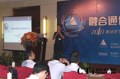 CTI論壇(ctiforum)9月10日消息(記者 楊毅):2010年9月9日奧迪堅(jiān)在廣州市嘉鴻華美達(dá)廣場(chǎng)酒店舉辦的“下一代融合通信平臺(tái)華南研討會(huì)” 圓滿落下帷幕。本次會(huì)議以 “融合通信” 為主題,將最新的由“IPT、IPCC、UC和Mobility”四個(gè)部分組成的融合通信技術(shù)完美呈現(xiàn)在嘉賓眼前,吸引了業(yè)界眾多知名廠商和媒體,并得到了奧迪堅(jiān)在各個(gè)行業(yè)的新老客戶的積極響應(yīng)和參與。通過(guò)奧迪堅(jiān)的精彩主題演講、現(xiàn)場(chǎng)的情景秀表演和眾多案例分享等多種形式,與合作伙伴及嘉賓共同探討融合通信技術(shù)該如何發(fā)展、解讀渠道新政策、同時(shí)更加深入了解奧迪堅(jiān)產(chǎn)品,提高合作伙伴在市場(chǎng)上的競(jìng)爭(zhēng)力。CTI論壇(m.liumsf.cn)獨(dú)家承辦此次會(huì)議,并進(jìn)行全程報(bào)道。