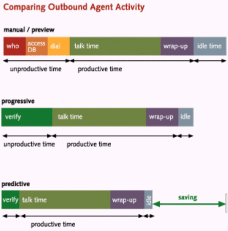 預(yù)測撥號 是一種用來在一個短的時段中對大量客戶進行聯(lián)絡(luò)的一種先進的步進模式。使用預(yù)測撥號,坐席代表僅僅處理成功的呼叫。預(yù)測撥號實現(xiàn)了最高水平的效率。預(yù)測撥號使用精密復(fù)雜的技術(shù)預(yù)測沒有被應(yīng)答的呼叫的一個百分比和什么時候坐席代表將完成正在進行著的呼叫。預(yù)測撥號將自動撥電話號碼并對其中一些呼叫會失敗做好了準(zhǔn)備。使用預(yù)測撥號,坐席代表每小時的通話時間大約在40到45分鐘。