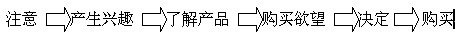 另外在其它的銷售渠道上,如電視、廣播、報(bào)紙等,他們對(duì)市場目標(biāo)的準(zhǔn)確度都是不高的,因?yàn)檫@樣的原因,也無法對(duì)目標(biāo)市場作掌控和測(cè)試,雖然他們可以很快速的擴(kuò)展市場,對(duì)市場產(chǎn)生很大的響應(yīng)力,但如果沒有很好的市場營銷與品牌整體性和長期性規(guī)劃,也很快的會(huì)變成曇花一現(xiàn),歷史中的記憶,這些渠道的成本也是最高的,所以不是所有的企業(yè)都能一體適用的,尤其是中小型企業(yè)是無法長期負(fù)擔(dān)的。誠如在之前的文章里面分析所講的,最好的銷售效果是一拉一推的力量,用多媒體感官性及理性的獲取消費(fèi)者的注意力,再配合快速效能的主動(dòng)銷售,往往能將營銷的效果提升到最高的層面。將到這兒,就不得不順帶提到消費(fèi)者購買的行為模式。我們將消費(fèi)者對(duì)購買的心理和行為分為幾個(gè)階段: