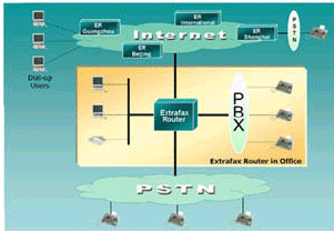 對于普通的傳真機(jī),ExtraFax Router是更合算的選擇。它不僅不需要額外的網(wǎng)關(guān)設(shè)計(jì),而且它還可以自動計(jì)算長途計(jì)費(fèi)單。最重要的是它可以自動尋找最佳路徑 (即最節(jié)省的方式) 通過Internet/Intranet發(fā)送傳真,同時(shí)ExtraFax Router基于DID/DTMF/CSID/PORT/Channel的自動分發(fā)到個(gè)人的傳真信箱也降低了人工管理的費(fèi)用并能實(shí)現(xiàn)傳真的安全性。