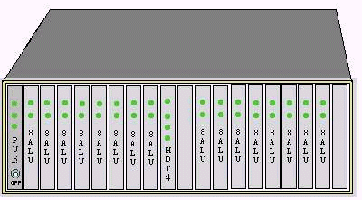見上圖 DAS120主機所用的機框為19英寸標(biāo)準機框,可直接裝入19英寸機柜,也可放置在桌面。機框共有20個槽口,兩邊可插兩塊電源板PSU,中間插數(shù)字中繼接口板HDT4,其余16個槽可插15塊模擬用戶板8ALU(或8ATU)。8ALU每塊板為8路,一個機框總共120路。