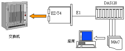 - DAS120與交換機采用E1連接,信令為隨路信令CAS。