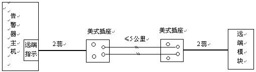 見下圖,遠(yuǎn)端模塊與告警主機(jī)通過二蕊電話線相連,連線距離可達(dá)5公里,連接不分極性,可正接或反接