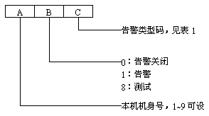 1 告警信息編碼 若發(fā)生告警或告警關(guān)閉時(shí),在BP機(jī)上會(huì)收到3位數(shù)字的代碼信息,其它具含義如下: