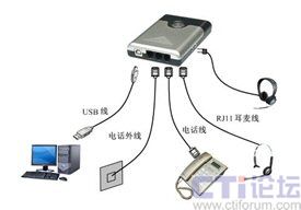 “話務(wù)通”設(shè)計(jì)新穎,接口包括電話線路接口、電話機(jī)接口、耳機(jī)接口和USB通信接口。配置立體聲揚(yáng)聲器和環(huán)型提示燈,提供聲光提示。“話務(wù)通”能夠提供IP網(wǎng)絡(luò)電話,自動(dòng)應(yīng)答,自動(dòng)外撥,來(lái)電彈屏,語(yǔ)音錄放,語(yǔ)音留言等功能。