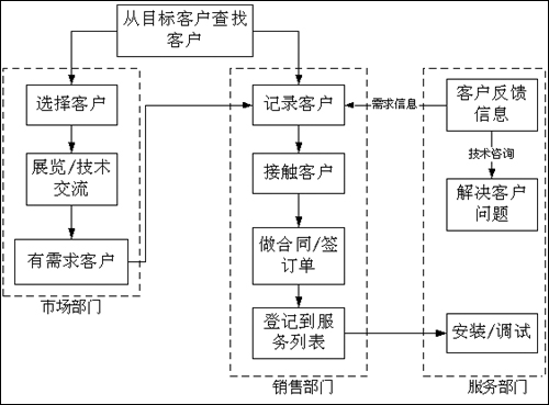 公司從很早就認(rèn)識到經(jīng)營中存在的這些問題,一直在尋找解決的方法和途徑。我們逐漸認(rèn)識到,公司經(jīng)營亟待解決的問題就是如何高效地處理客戶信息、有效地進(jìn)行客戶關(guān)系的管理,這是影響到公司能否獲得更大發(fā)展的關(guān)鍵。因?yàn)樵诠緞倓偲鸩綍r,業(yè)務(wù)人員面對的是很少的客戶群,他們對每個客戶的具體情況非常熟悉,能夠根據(jù)每個客戶的不同需求特點(diǎn)提供相應(yīng)的產(chǎn)品和服務(wù)。而公司的管理人員面對的也是很少的業(yè)務(wù)人員,他們可以清楚地掌握每個業(yè)務(wù)人員的工作情況,并有針對性的加以監(jiān)督管理。公司的業(yè)務(wù)部門設(shè)置相對簡單,彼此的溝通和配合也比較容易進(jìn)行。這時候幾乎不存在客戶的管理問題。但當(dāng)公司的業(yè)務(wù)成倍增長后,業(yè)務(wù)人員和客戶的數(shù)量都空前膨脹,這時候簡單的管理手段就承擔(dān)不了如此沉重的管理任務(wù),公司的經(jīng)營就會出現(xiàn)混亂。突出的表現(xiàn)就是客戶、業(yè)務(wù)人員失控,公司的業(yè)務(wù)拓展陷入無序狀態(tài),失去繼續(xù)增長的動力。在這種情況下,要使公司的經(jīng)營走出泥潭,必須要引入的就是先進(jìn)的客戶關(guān)系管理的觀念和手段。