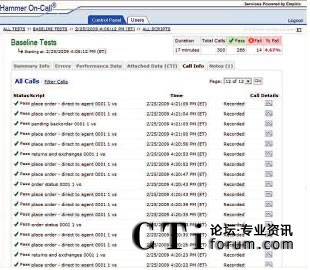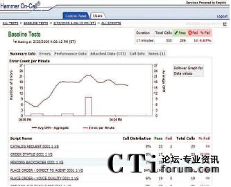 只需使用一個(gè)簡單易用的Web接入就可以和Empirix測試小組一起實(shí)時(shí)跟蹤測試進(jìn)度。此外,還同時(shí)可以查看測試結(jié)果、發(fā)生失敗的類型和導(dǎo)致失敗發(fā)生的測試流量。通話全程記錄功能可以用來記錄相關(guān)通話,從而捕獲和幫助診斷發(fā)生失敗的根源?梢詤⒖枷铝袌D表: