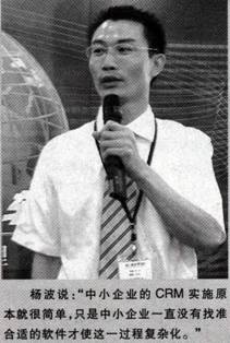 楊波說:“中小企業(yè)的CRM實(shí)施原本就很簡(jiǎn)單,只是中小企業(yè)一直沒有找準(zhǔn)合適的軟件才使這一過程復(fù)雜化!