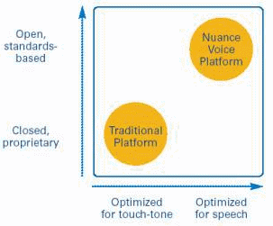 傳統(tǒng)的平臺是基于封閉的、非統(tǒng)一標(biāo)準(zhǔn)的技術(shù)并為按鍵式輸入應(yīng)用而設(shè)計(jì)的,而Nuance NVP平臺是開放的、基于統(tǒng)一標(biāo)準(zhǔn)的語音平臺產(chǎn)品,它能夠支持客戶公司已有的IT投資和基礎(chǔ)設(shè)備,同時(shí)可以加入語音的應(yīng)用,提高了信息傳遞的自動化程度和客戶的滿意度。