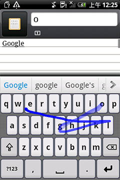 如圖所示,Nuance T9 Trace英文輸入方案對于各種不同的字母組合都能有效識別,像“google”這種既有連續(xù)又有間斷重復(fù)字母的單詞也不在話下,一次就能精準(zhǔn)輸出。另外,該輸入法還可以省去標(biāo)點符號,如“don"t”“can"t”等單詞,用戶只需滑觸“d-o-n-t”這四個字母,輸入法就會自動識別。