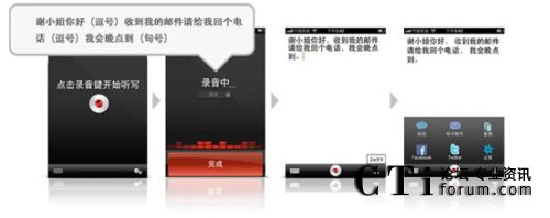 聲龍聽寫(Dragon Dictation)于2009年由 Nuance 公司在蘋果App Store首次推出,目前累計下載量已經(jīng)達(dá)到了數(shù)百萬次,高踞蘋果App Store“商業(yè)生產(chǎn)力”類別應(yīng)用軟件下載首位。聲龍聽寫(Dragon Dictation)最新版本實現(xiàn)了與iPhone™ iOS-4的全面兼容,用戶只需點擊快捷工具欄上的圖標(biāo),便可直接進(jìn)入電子郵件、短信或速寫板的用戶界面。不僅如此,聲龍聽寫(Dragon Dictation)還包含了便捷的自動存儲功能,如果用戶的語音錄入被呼入的電話打斷,應(yīng)用程序可自動保存已錄寫的文本。