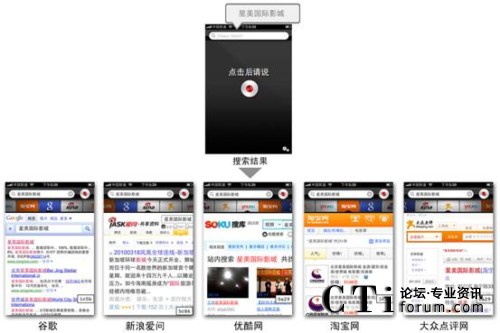 適用于iPhone™、iPad™和iPod touch™的聲龍搜索(Dragon Search)同時也在蘋果 App Store推出,為用戶提供強(qiáng)大的語音搜索功能。基于該產(chǎn)品,用戶只需說出自己的搜索要求,便可通過移動網(wǎng)絡(luò)找到相應(yīng)的信息和答案。 另外,聲龍搜索(Dragon Search)創(chuàng)新的搜索功能界面(Dragon Search Carousel)還可以支持用戶同時訪問包括谷歌、新浪愛問、優(yōu)酷網(wǎng)、淘寶網(wǎng)和大眾點評網(wǎng)等多個熱門網(wǎng)站和搜索引擎,并在幾秒鐘內(nèi)獲得來自多個內(nèi)容來源的搜索結(jié)果。