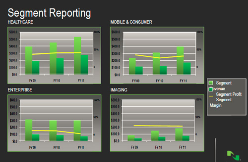 2011財(cái)年,Nuance醫(yī)療保健部門營收5.26億美元,同比增17.3%;利潤2.69億美元,同比增18.5%。手機(jī)及大眾消費(fèi)者領(lǐng)域營收3.93億美元,同比增27.1%;利潤1.7億美元,同比增42.4%。企業(yè)服務(wù)領(lǐng)域營收2.96億美元,同比持平;利潤6330萬美元,同比下降23%。圖像領(lǐng)域營收1.77億美元,同比增26.1%;利潤6910萬美元,同比增24.3%。