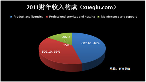 2011財(cái)年,Nuance產(chǎn)品銷售及授權(quán)收入總計(jì)6.07億美元,同比增28.3%,是增長最快的一項(xiàng)收入來源。占總營收的比重也不斷上升,2011財(cái)年升至46.1%,上年同期為42.3%。