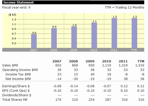 近年來,Nuance營收增長較為穩(wěn)定。2011財(cái)年,總營收13.18億美元,同比增17.9%。運(yùn)營利潤5300萬美元,同比增60%。凈利潤首次轉(zhuǎn)為正值,為3800萬美元,去年同期凈虧損1900萬美元。