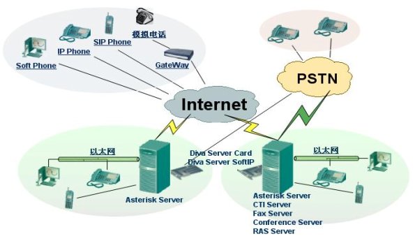Asterisk IP PBX與Diva Server結(jié)合就能夠?qū)崿F(xiàn)IP PBX與呼叫中心完美結(jié)合的一體化解決方案,該方案結(jié)合了IP網(wǎng)的靈活性及Eicon