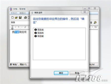 Vista在轉(zhuǎn)譯你的聽寫時(shí)很可能會(huì)產(chǎn)生錯(cuò)誤。而只得慶幸的是它們能夠很容易地得到糾正。例如,如果你說(shuō)“我現(xiàn)在能說(shuō)任何”,而Vista輸入的是“我不能說(shuō)任何”,這時(shí)你可以說(shuō)“更正不能”,接著你就會(huì)看到一個(gè)清單,里面列有可替換的詞,如圖10所示。