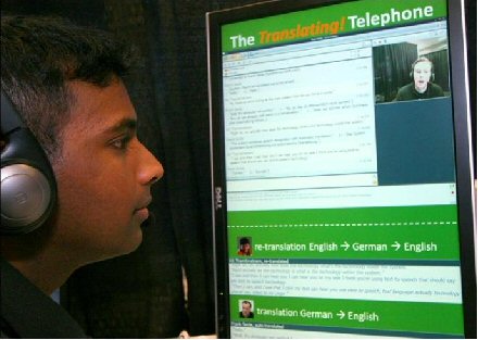 Thambiratnam說:“當多種不同背景的人需要一起交流時,我們的技術就能提供非常大的便利!盩hambiratnam用同聲傳譯電話展示了這樣一種的情景:Thambiratnam說英語,他要給他的德國籍經理Frank