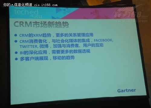 在微軟Tech·Ed 2011會(huì)上,來(lái)自微軟商務(wù)管理解決方案事業(yè)部中國(guó)區(qū)總經(jīng)理徐曦詳細(xì)的介紹了微軟的CRM的發(fā)展歷程以及未來(lái)CRM的發(fā)展趨勢(shì)。