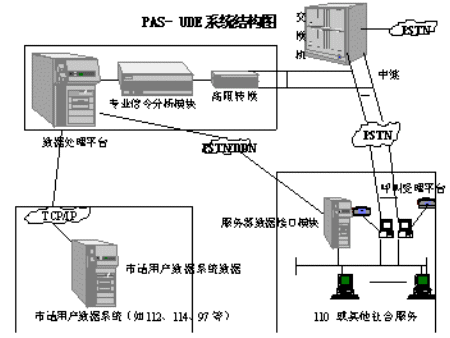 為了滿足各類社會(huì)應(yīng)急與服務(wù)呼叫系統(tǒng)對(duì)電話用戶資料的需要,同時(shí)又解決電信部門對(duì)用戶資料數(shù)據(jù)庫(kù)的保密和安全要求,我公司成功開發(fā)了PAS-UDE(User Data Extract)電話信息回送系統(tǒng),并成為110聯(lián)網(wǎng)接口設(shè)備開發(fā)生產(chǎn)入網(wǎng)廠商。