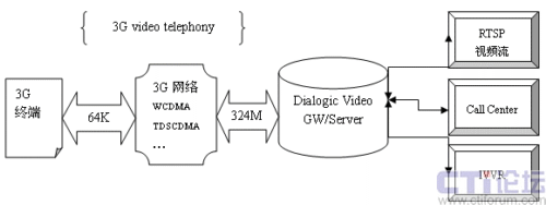 另一類業(yè)務(wù),我舉個(gè)例子,像比較近的香港CSL移動(dòng)電視,也是通過3G視頻電話打進(jìn)去在IVVR的幫助下選擇頻道,IVVR和流媒體服務(wù)器相連,就可以向3G用戶播放實(shí)時(shí)視頻內(nèi)容了。流媒體服務(wù)器是來自互聯(lián)網(wǎng)的應(yīng)用,互聯(lián)網(wǎng)上的實(shí)時(shí)轉(zhuǎn)播通過RTSP技術(shù),我們的IVVR也是利用了RTSP技術(shù)與實(shí)時(shí)內(nèi)容進(jìn)行互動(dòng)。這就是所謂的3G視頻點(diǎn)播。