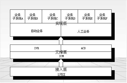 支撐層由ICM、IVR、ACD以及Web協(xié)同、座席管理、傳真、錄音管理、業(yè)務流程生成等子系統(tǒng)組成。形成獨立于用戶業(yè)務的通用支撐系統(tǒng),其核心是ICM